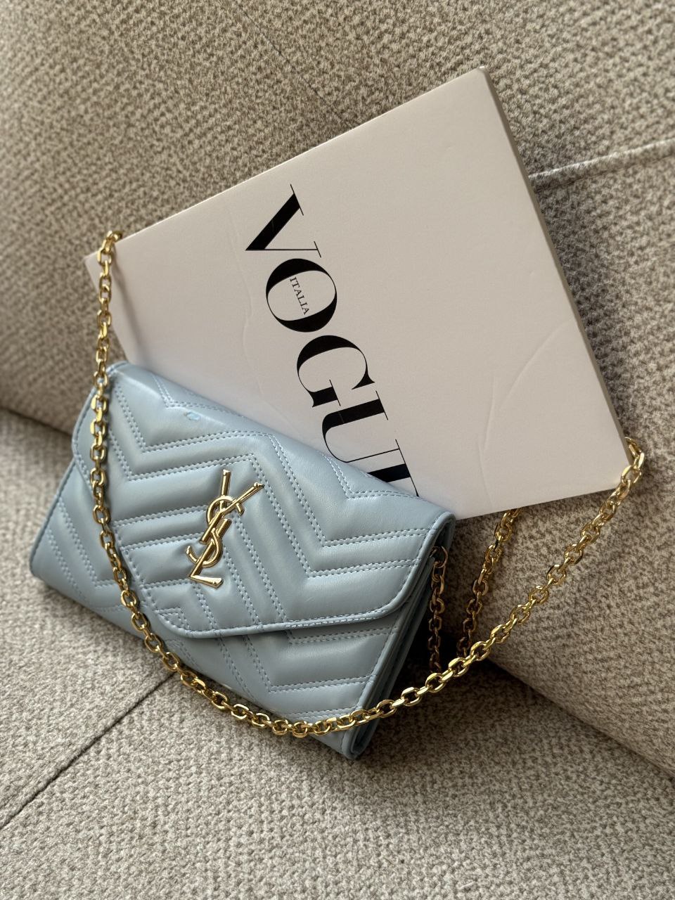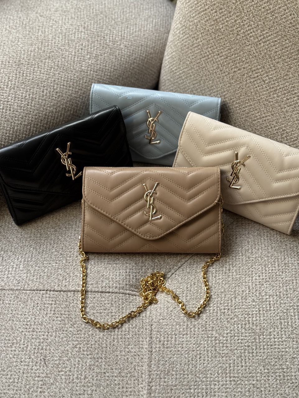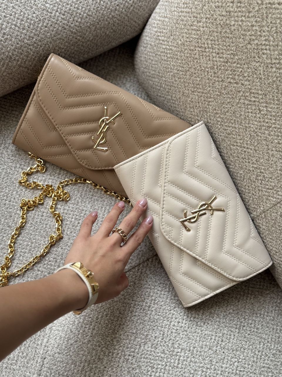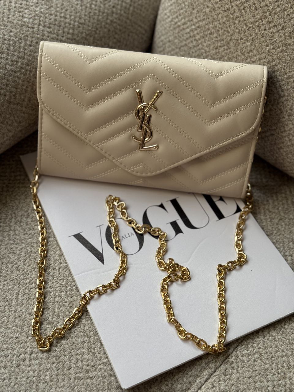 کیف پاسپورتی YSL مناسب استفاده ی مجلسی و روزمره تمام متریال وارداتی یراق رنگ ثابت بندزنجیری رنگ ثابت داخل کیف جاکارتی داره زیپ وسط داره ابعاد:22*12